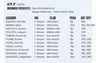 SEGUIR LEYENDOFútbol local : Dictamen del Tribunal de Penas