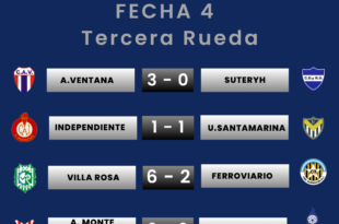 Se jugó la fecha 4 de la tercera rueda y 22 del Acumulado del torneo de fútbol menor e infantil Ruben «Chuku’ Fauquen SUB 13A.Ventana : ( 3 ) : Thiago Costantino ( 2 ) – Thiago Graff Suteryh : ( 0 )Independiente : ( 1 ) : Fermin Amestoy U.Santamarina : ( 1 ) : …