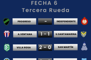 Se jugó la fecha 6 de la tercera rueda y 24 del Acumulado del torneo de fútbol menor e infantil Ruben «Chuku’ Fauquen MENORES SUB 13Progreso vs Independiente postergadoA.Ventana : ( 1 ) : Santiago De CastroU.Santamarina ( 1 ) : Bautista PavonV.Rosa : ( 2 ) : Dylan Vega ( 2 )San …