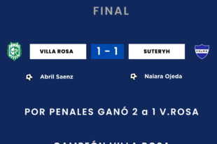 Se jugó la última fecha del clausura , del torneo sub 15 de fútbol Femenino » Alicia Cejas de Montero » que organiza la Liga de fútbol de C.Dorrego Posiciones Clausura1° Villa Rosa 12 Pts2° Suteryh 9 Pts3° Porteño. 6 Pts4° Progreso 3 Pts5° U.Santamarina 0 Pt.Villa Rosa ganador del …