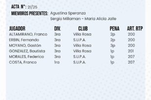 SEGUIR LEYENDOFútbol local : Dictamen del Tribunal de Penas