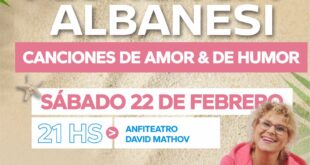 La Municipalidad mediante el área de Turismo anunció que el sábado 22 se dará cierre al ciclo de actividades musicales programadas para la temporada estival en el anfiteatro David Mathov de Marisol. En esta ocasión será presentando a la cantante bahiense Florencia Albanesi con su show “Canciones de amor …