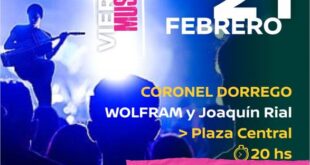 Cultura de la comuna informó que dentro de los Viernes Musicales, este 21 de febrero actuarán en la Plaza Central desde las 20, Wolfram y Joaquín Rial. Como siempre el espectáculo es libre y gratuito Info e imagen : Prensa municipalidad de C.Dorrego