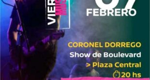 Cultura e incluido en los Viernes Musicales, anunció para este viernes a las 20 en la Plaza Central la presentación de Show de Boulevard. El espectáculo es libre y gratuito. Info e imagen : Prensa municipalidad de C.Dorrego