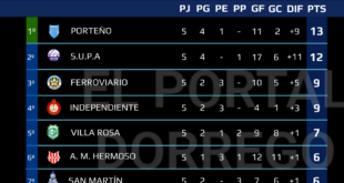 Se jugó la 5° y última fecha de la primer rueda del Torneo Roberto «Tato» Rochat que organiza la Liga de fútbol de C.Dorrego Sub 25 San Martín y Ferroviario jugarán la final PRIMERA La final Porteño vs S.U.P.A.
