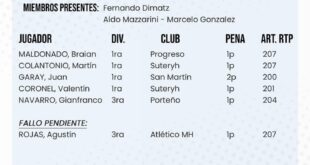 SEGUIR LEYENDOFútbol local : Dictamen del Tribunal de Penas