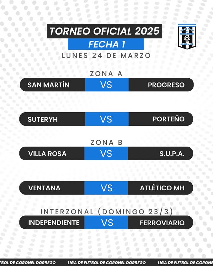 Comienza el torneo Oficial Roberto » Tato » Rochat que organiza la Liga de fútbol de C.Dorrego y la primera fecha de la primer rueda se juega Domingo 23 y Lunes 24