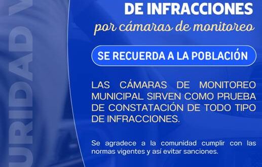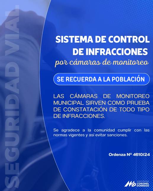 La Municipalidad recordó que tal cual lo indica la Ordenanza 4610/24 que las cámaras de monitoreo municipal sirven como prueba de constatación de todo tipo de infracciones; para ello funciona el Sistema de Control de Infracciones por cámaras de monitoreo.