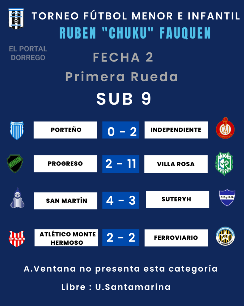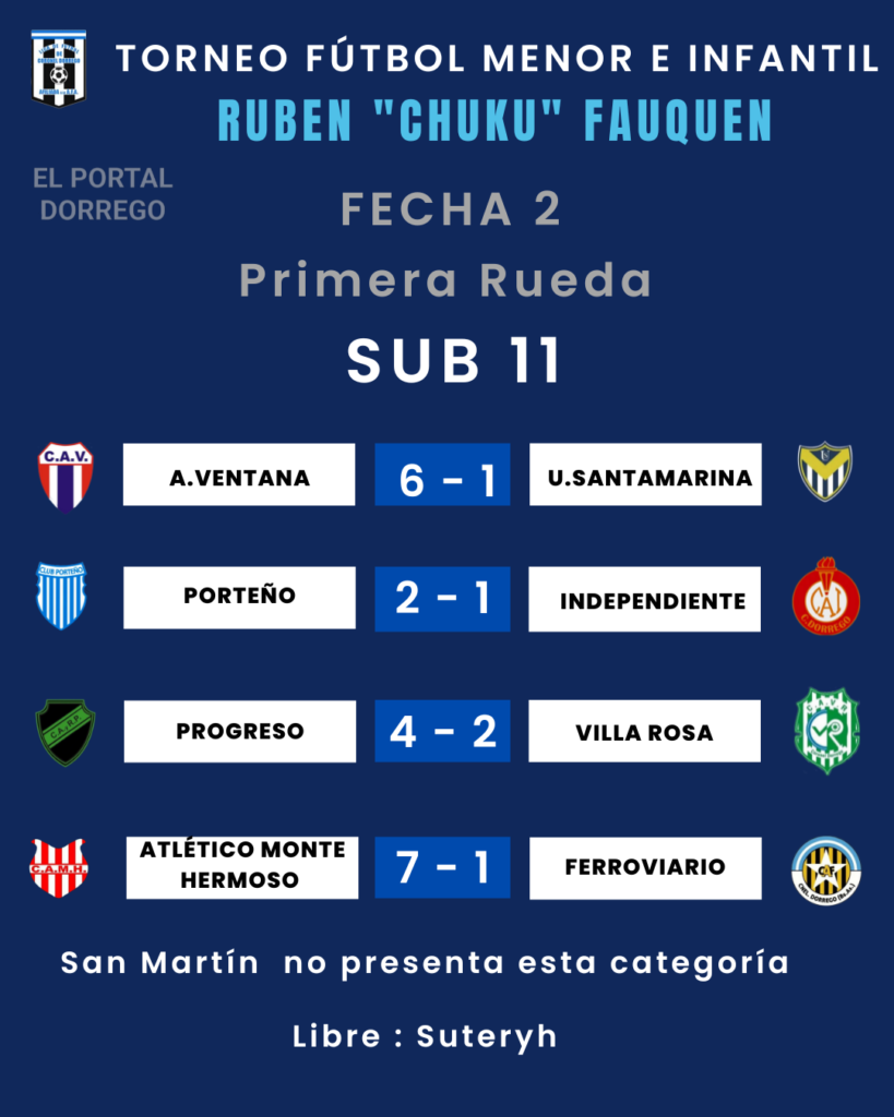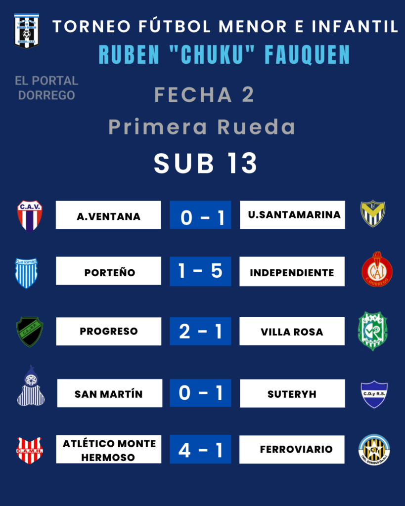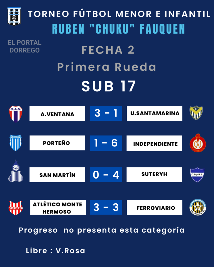| A.Ventana : ( 6 ) : Theo Minor ( 2 ) – Galo Dalmas ( 2 ) – Lucas Gonzalez ( 2 ) U.Santamarina : ( 1 ) : Francisco Gonzalez |