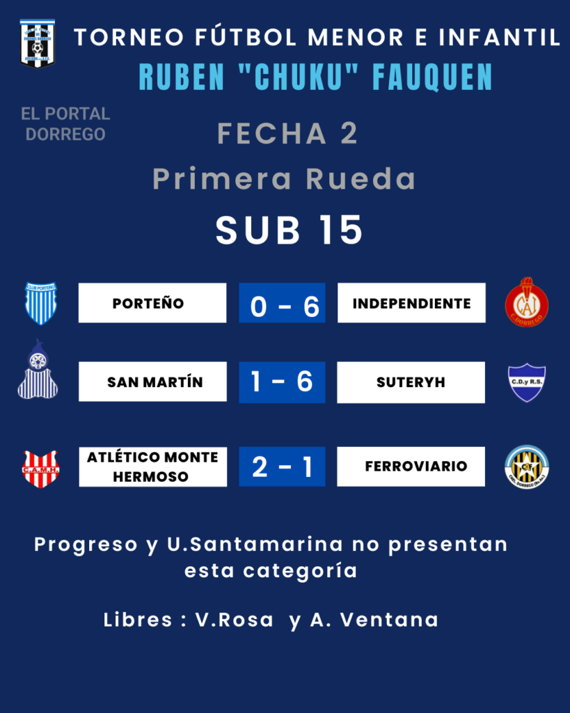 | Porteño : ( 0 ) Independiente : ( 6 ) : Nicolas Tello ( 3 ) – Luca Boggon – Maximo Echeto ( 2 ) |