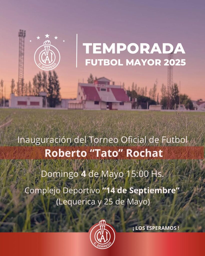 Tenemos el placer de invitarlos a la inauguración del Torneo Oficial de Futbol Mayor de la Liga de Coronel Dorrego “Roberto Tato Rochat”