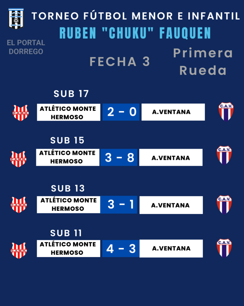 Con los encuentros entre A.M.Hermoso y A.Ventana, comenzó este viernes la tercera fecha del torneo de fútbol menor e infantil Ruben «Chuku’ Fauquen