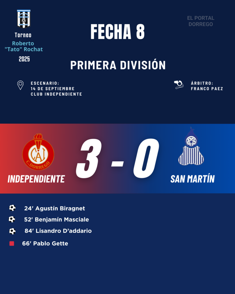 | Independiente: ( 0 ) San Martín : ( 1 ) : Ian Errazquin |