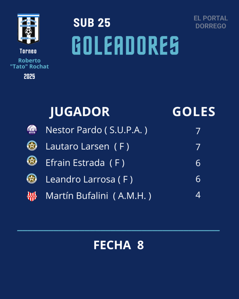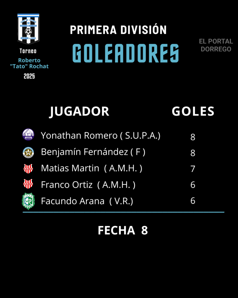 Se jugó la fecha 8 del torneo Roberto «Tato» Rochat, que organiza la Liga de fútbol de C.Dorrego