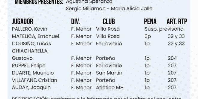 Fútbol local : Dictamen del Tribunal de Penas El portaldorrego junio 27, 2025 DEPORTES Comentarios desactivados en Fútbol local : Dictamen del Tribunal de Penas COMPARTIR tweetRelated Articles Bochas : C.Dorrego ganó el Zonal individual de segunda categoríafebrero 22, 2026 Fútbol : Suteryh comienza su participación en la Copa Aiellofebrero 19, 2026 Bochas : C.Dorrego ganó el Zonal individual de tercera y jugará el Provincialfebrero 9, 2026COMPARTA NUESTRAS NOTICIASInfo : facebook Liga de fútbol Coronel Dorrego COMPARTIR tweet