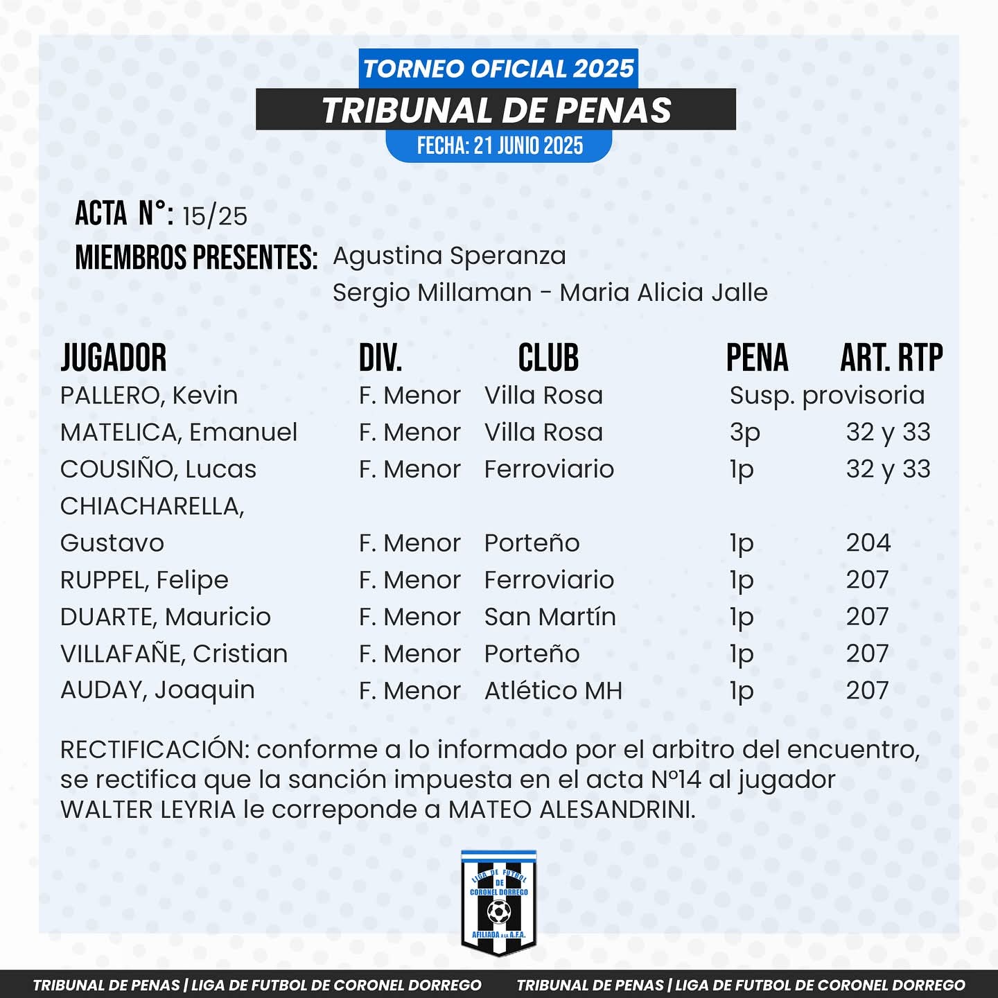Info : facebook Liga de fútbol Coronel Dorrego