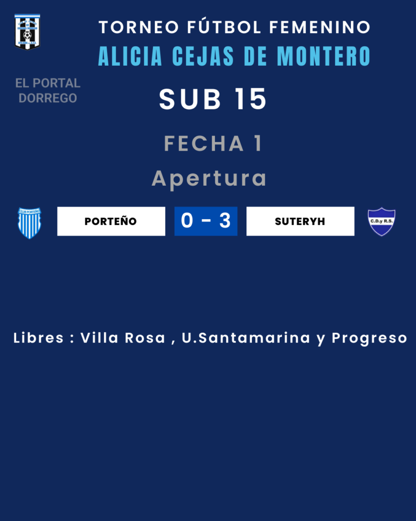 | Porteño : ( 0 ) Suteryh : ( 3 ) : Naiara Ojeda ( 2 ) – Mia Folasco |