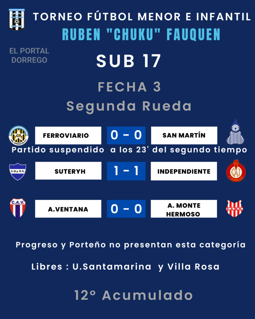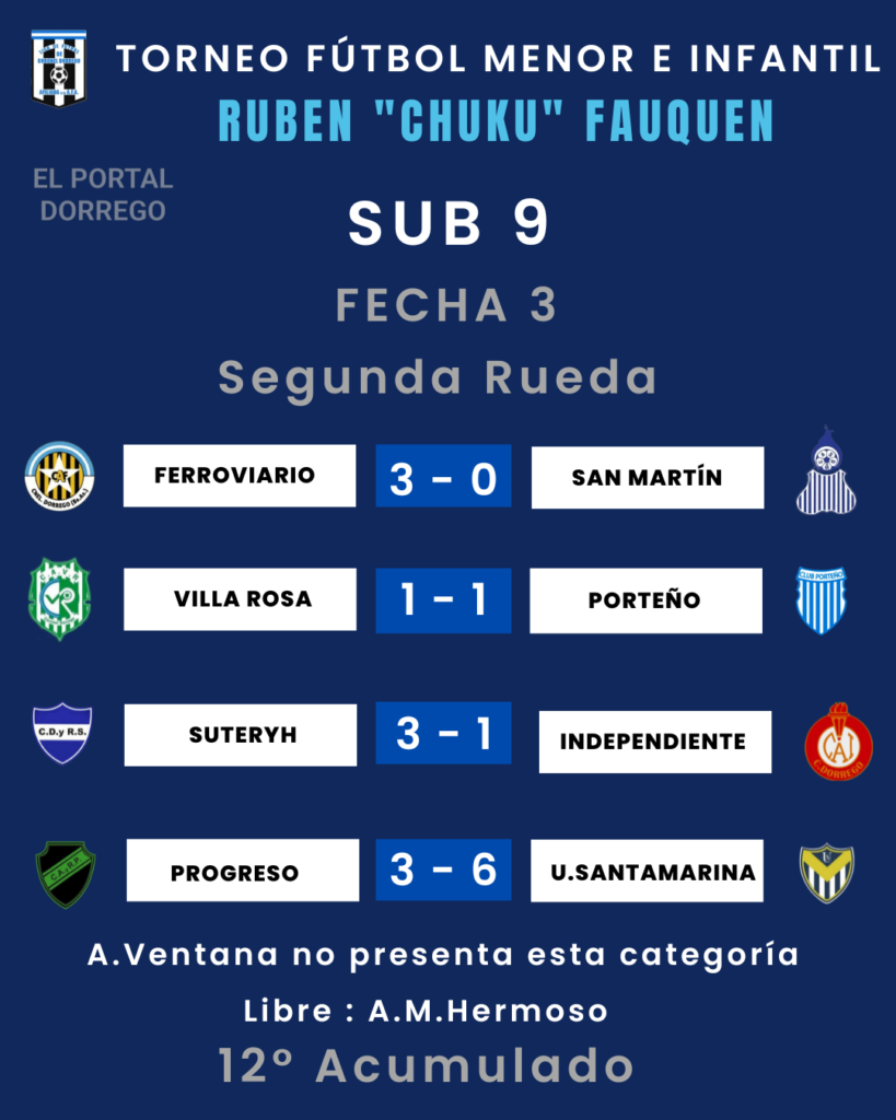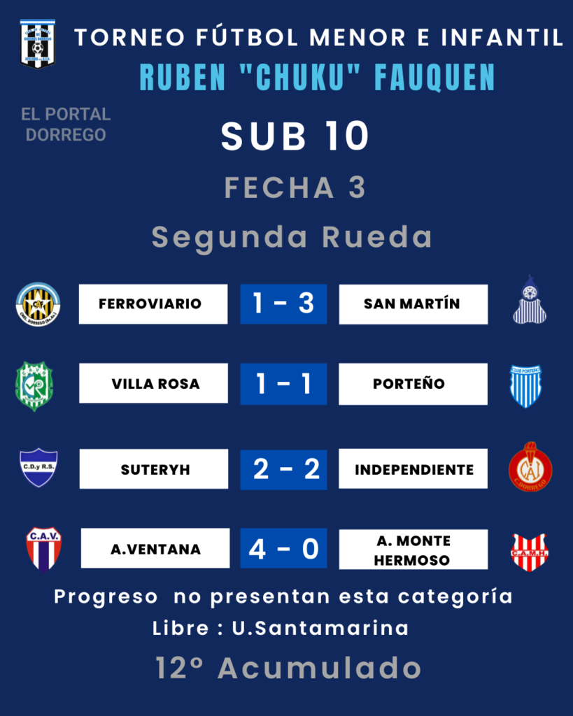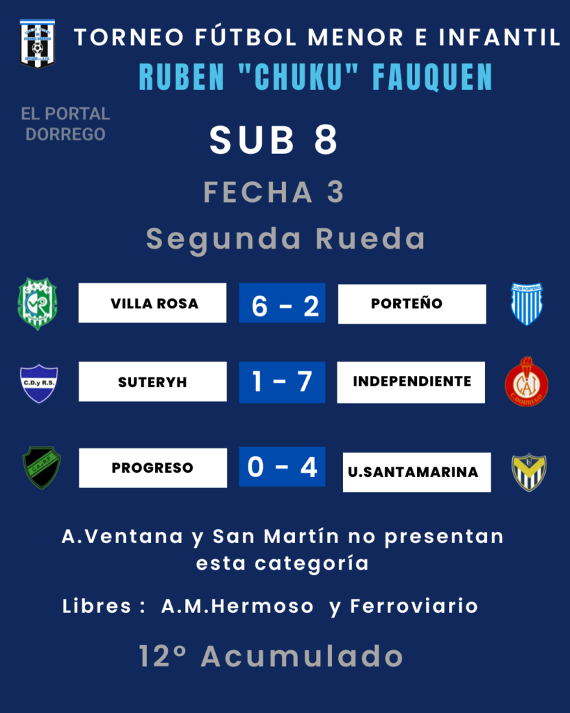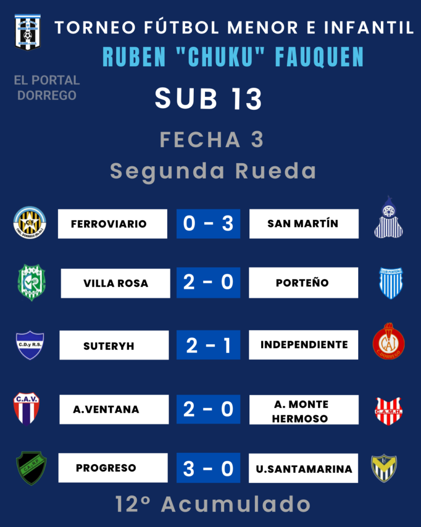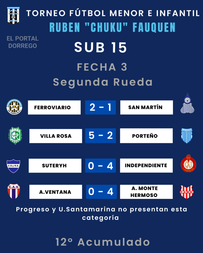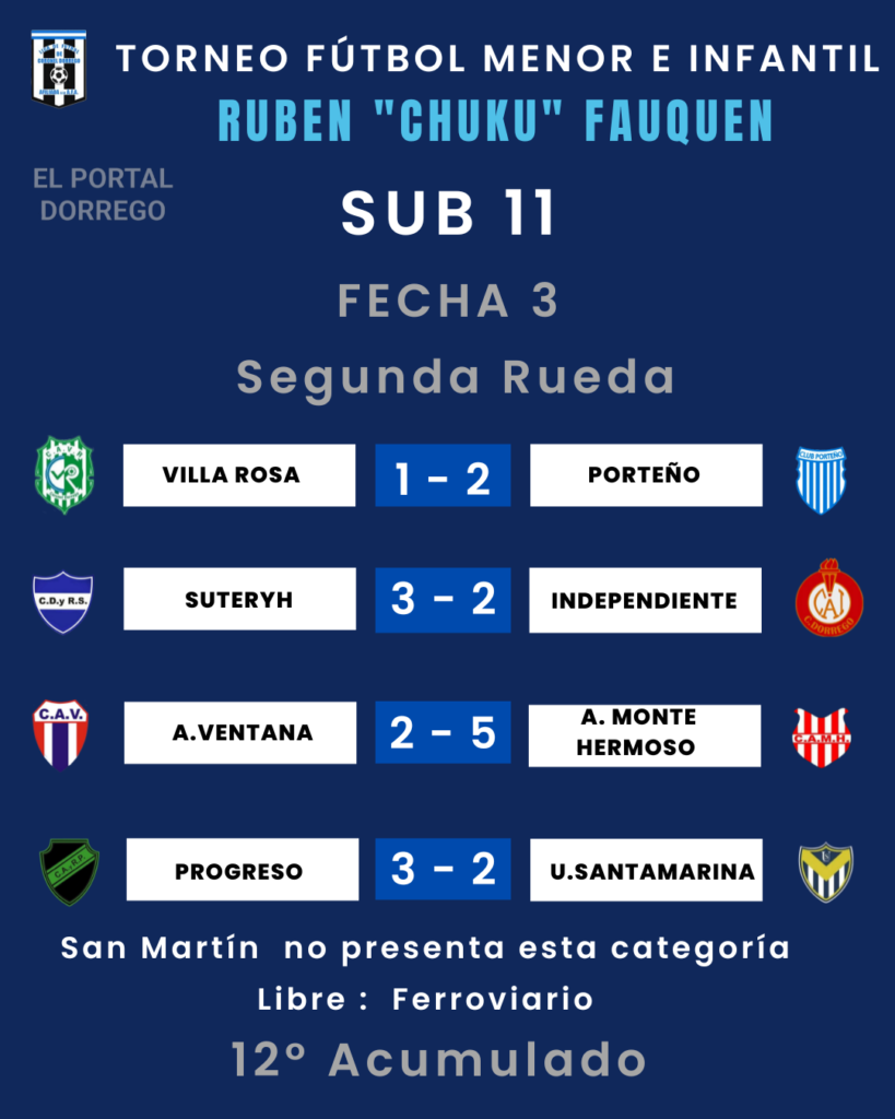 Se jugó la fecha 3 de la segunda rueda y 12 del Acumulado del torneo de fútbol menor e infantil Ruben «Chuku’ Fauquen