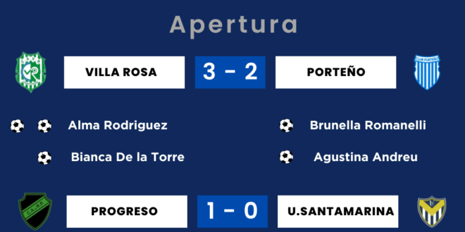 | Villa Rosa 6 Pts Suteryh 3 Pts Progreso 3 Pts U.Santamarina 0 Pt Porteño 0 Pt |