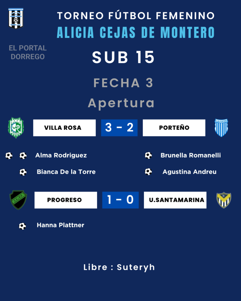 Se jugó la fecha 3 del torneo sub 15 de fútbol Femenino » Alicia Cejas de Montero » que organiza la Liga de fútbol de C.Dorrego