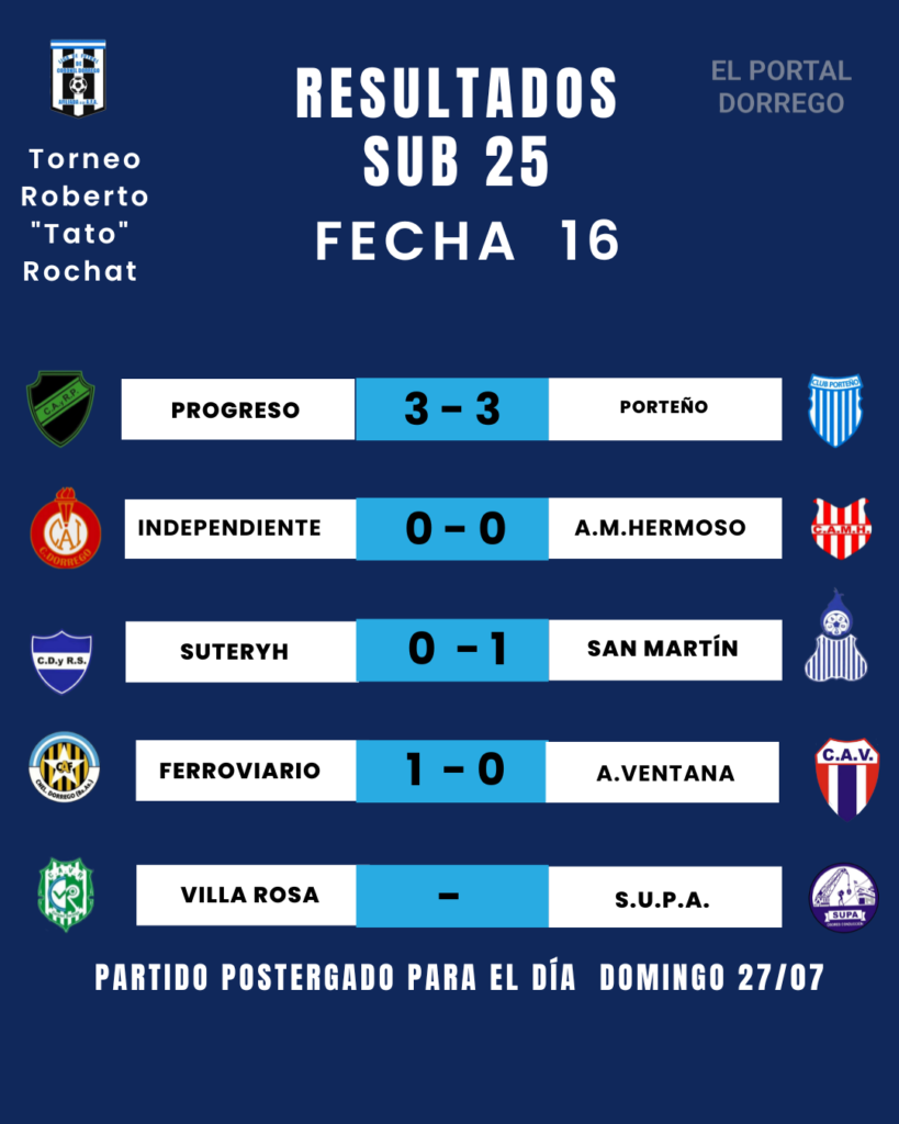 Se jugaron cuatro partidos de la fecha 16 del torneo Roberto «Tato» Rochat, que organiza la Liga de fútbol de C.Dorrego