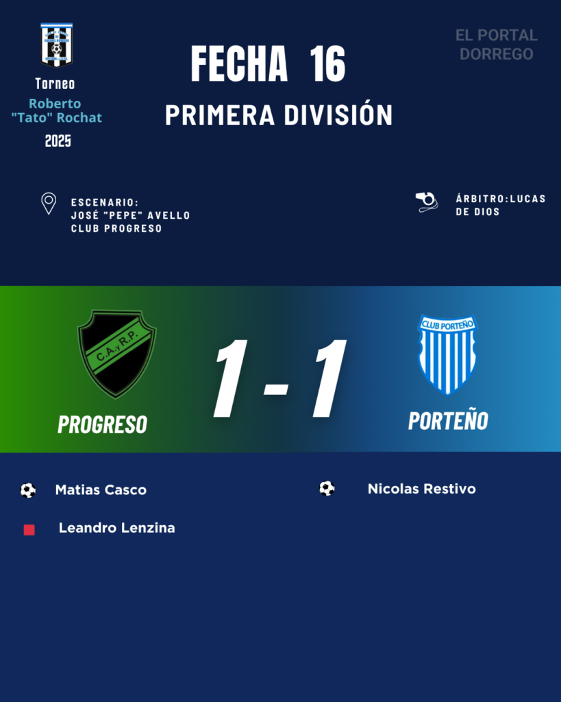 | Progreso : ( 3 ) : Isaias Castaño ( 2 ) – Santiago Escobar Porteño : ( 3 ) : Gianfranco Navarro ( 3 ) |