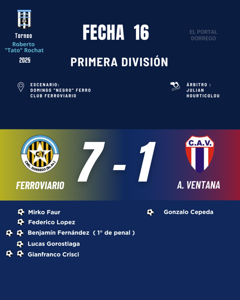 | Ferroviario : ( 1 ) : Lautaro Larsen A.Ventana : ( 0 ) |