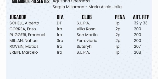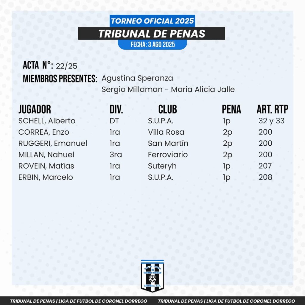 Fútbol local : Dictamen del Tribunal de Penas El portaldorrego agosto 8, 2025 DEPORTES Comentarios desactivados en Fútbol local : Dictamen del Tribunal de Penas COMPARTIR tweetRelated Articles Fútbol menor : se completó la fecha 2 de la tercera rueda1 día ago Deportes. Torneo de Tejo en el Vivero Municipal2 días ago ACTIVIDAD DE FÚTBOL MENOR DEL PRÓXIMO SÁBADO3 días agoCOMPARTA NUESTRAS NOTICIASInfo : facebook Liga de fútbol Coronel Dorrego COMPARTIR tweet