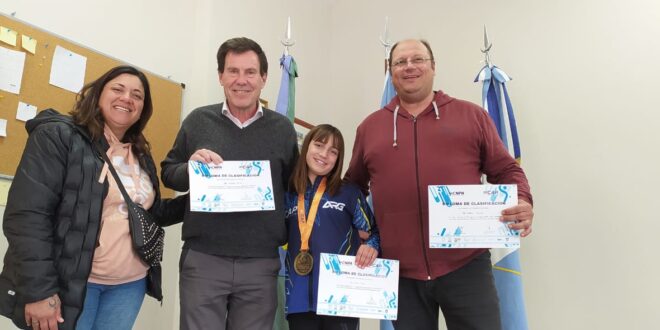 En la mañana de este martes el intendente Juan Chalde recibió en su despacho a la patinadora local, Tania De Marco, quien concurrió acompañada de sus padres. El jefe comunal saludó y felicitó a la deportista dorreguense que días pasados alcanzó importantes logros, ya que obtuvo la clasificación, en las tres disciplinas individuales en las que participó, al Torneo Absoluto de Patín que se realizará en San Juan.