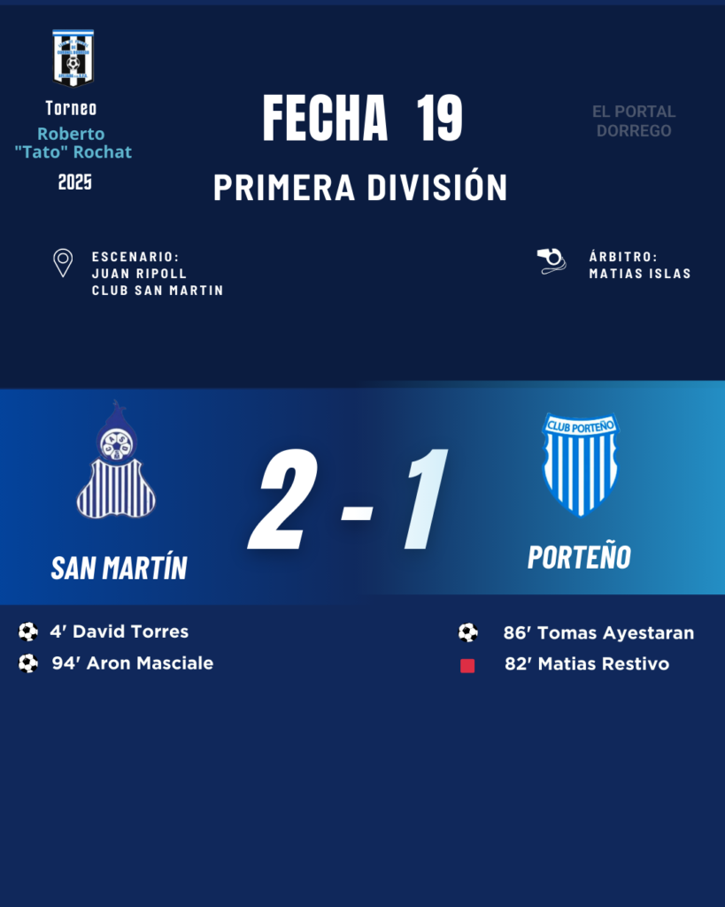 | San Martín : ( 0 ) Porteño : ( 3 ) : Gianfranco Navarro – Benjamín Kess – Facundo Aguirre |