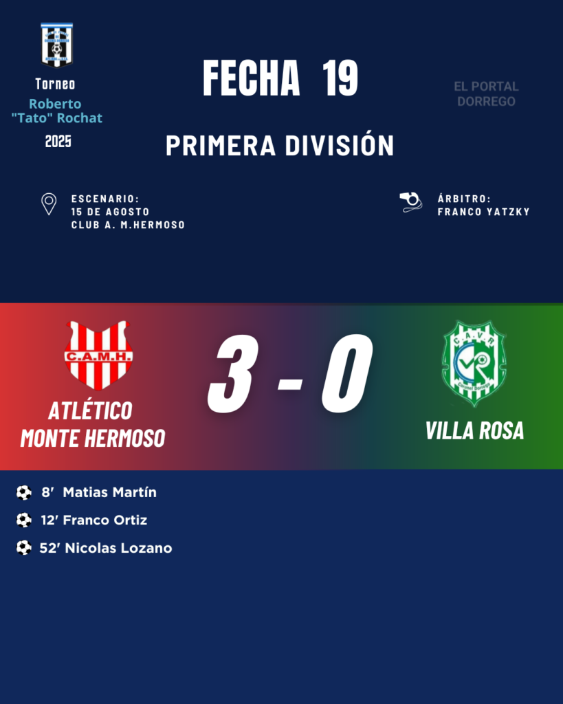| A.M.Hermoso : ( 0 ) Villa Rosa : ( 1 ) : Nicolas Nuñez Expulsados : Dylan Correa ( A.M.H. ) – Lautaro Ortiz ( A.M.H. ) – Oscar Guerrero ( V.R. ) – Rodrigo Maidana D.T. ( V.R. ) |