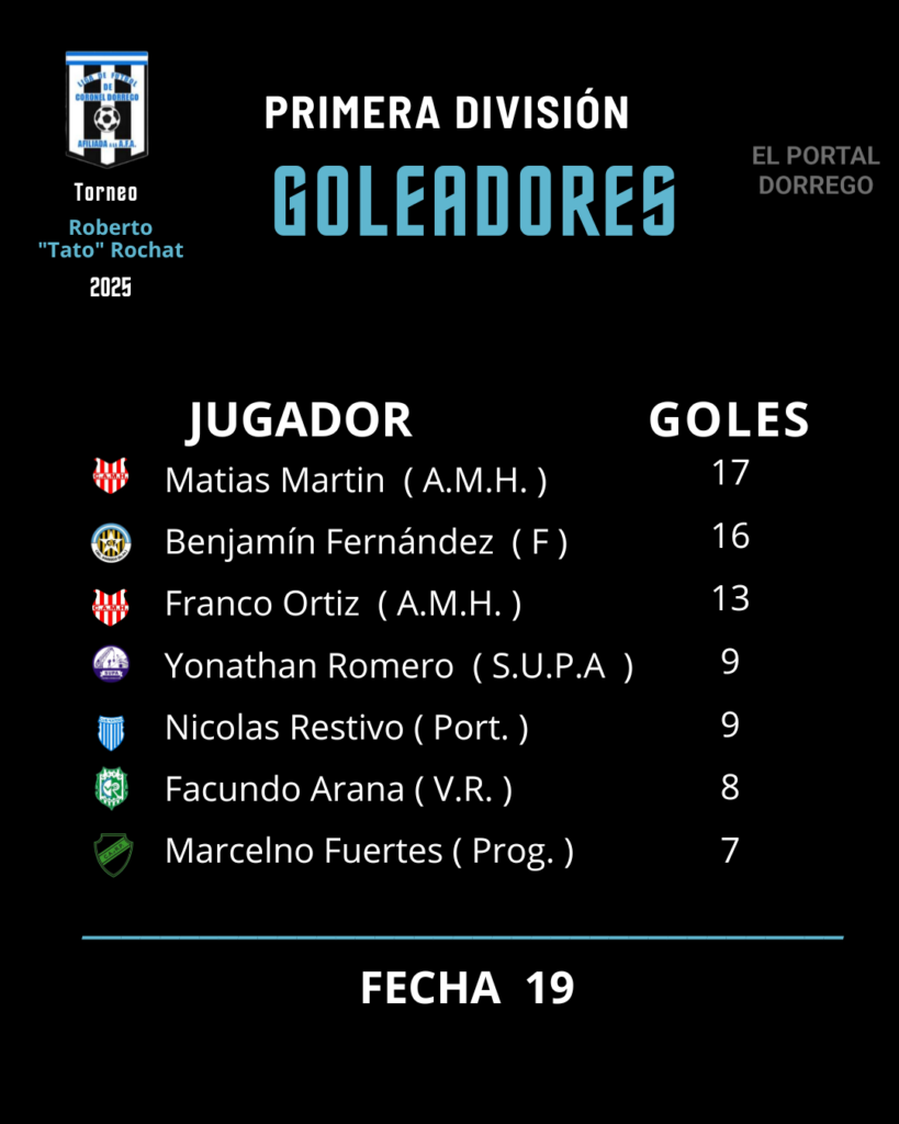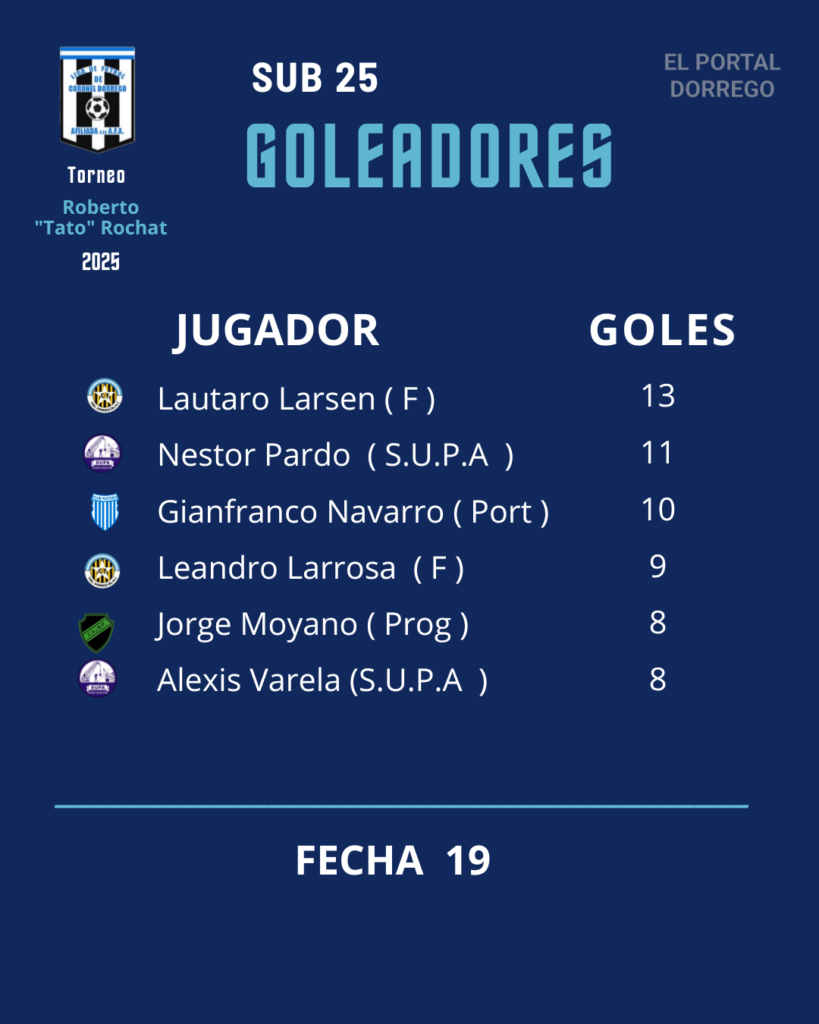 Se jugó la fecha 19 del torneo Roberto «Tato» Rochat, que organiza la Liga de fútbol de C.Dorrego
