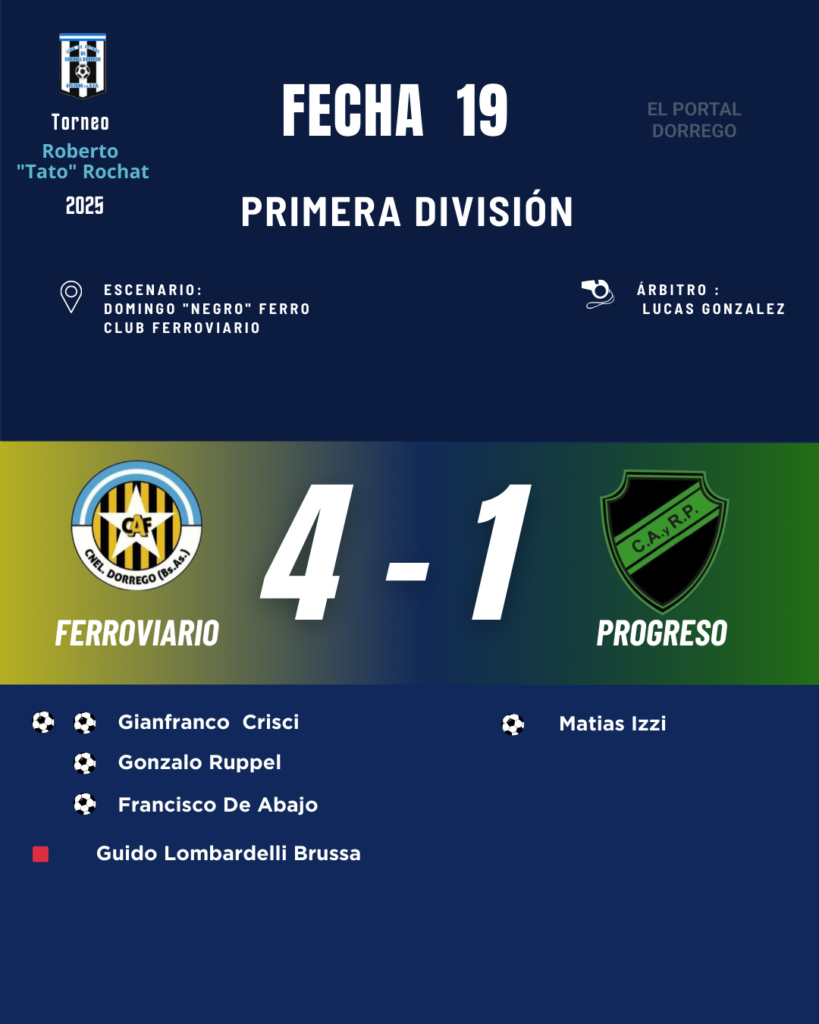 | Ferroviario : ( 3 ) : Lautaro Larsen – Fernando Fuertes – Mariano Tear Progreso : ( 0 ) |