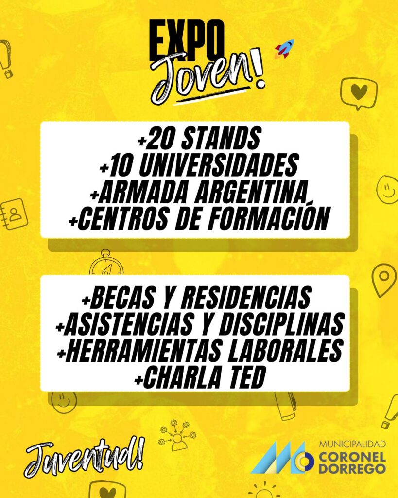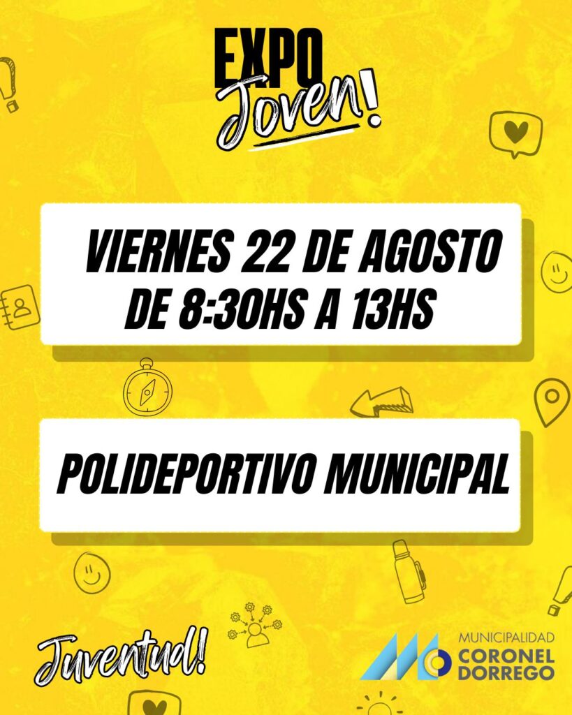 Desarrollo Humano de la comuna a través del Área de Juventud informó que el próximo viernes 22, de 8:30 a 13, se realizará en el Polideportivo de Coronel Dorrego la Expo Joven 2025, una jornada educativa y de orientación destinada a los estudiantes del distrito y abierta a toda la comunidad.