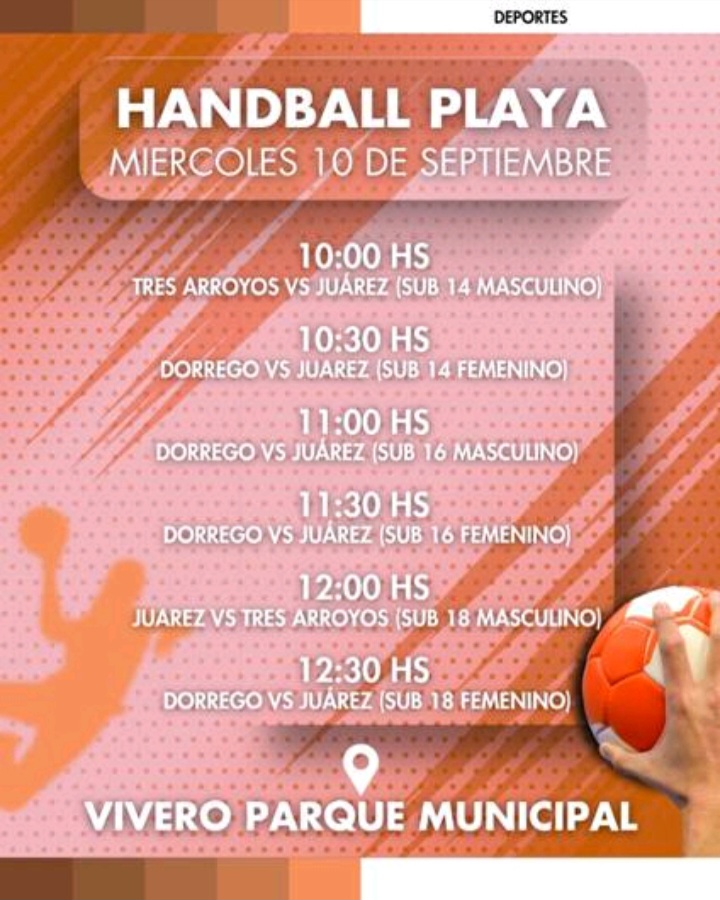 El director de Deportes de la comuna, Rubén Bilbao informó que Coronel Dorrego será sede mañana miércoles 10 desde las 10 en el vivero Parque de la etapa regional de Handball Playa en Juegos Bonaerenses 2025. El funcionario destacó además que los equipos ganadores pasarán a la etapa inter-regional que se disputará el 24 de este mes en Benito Juárez.