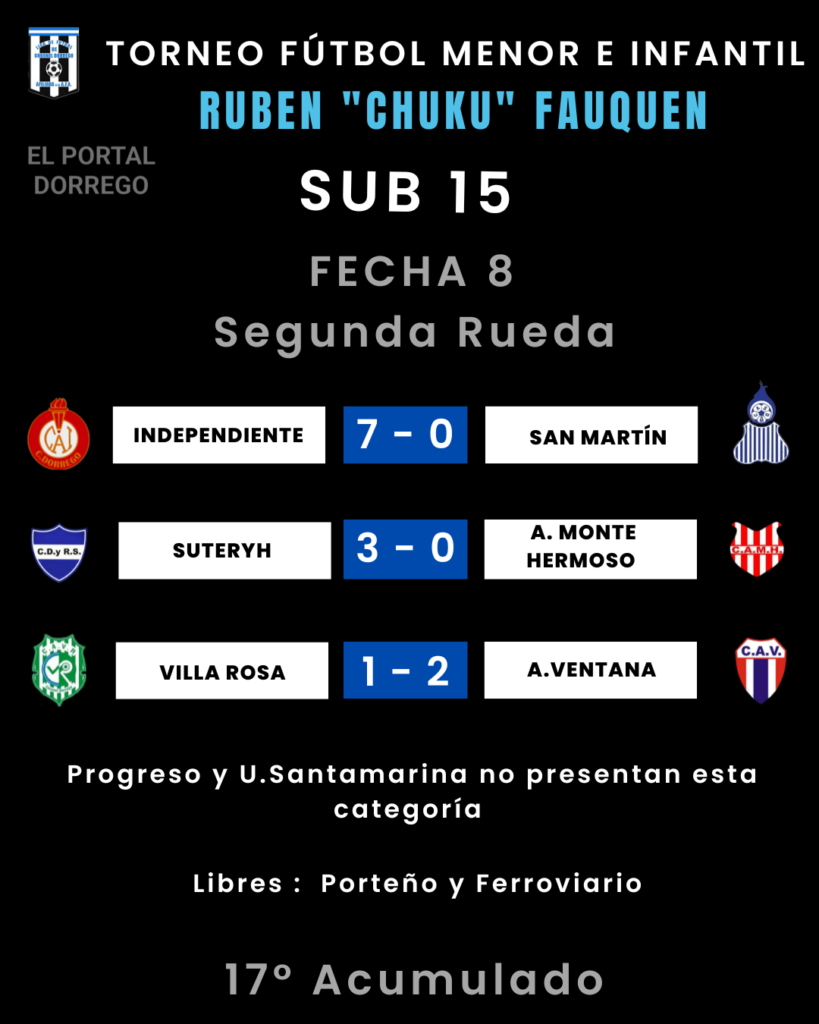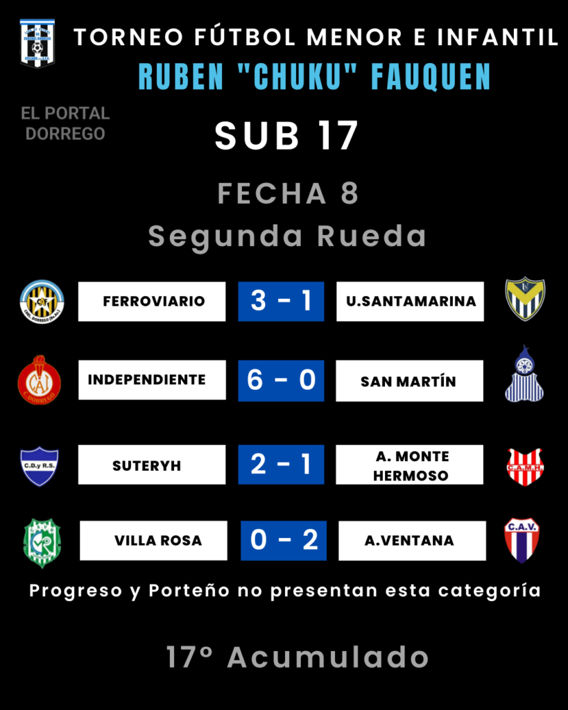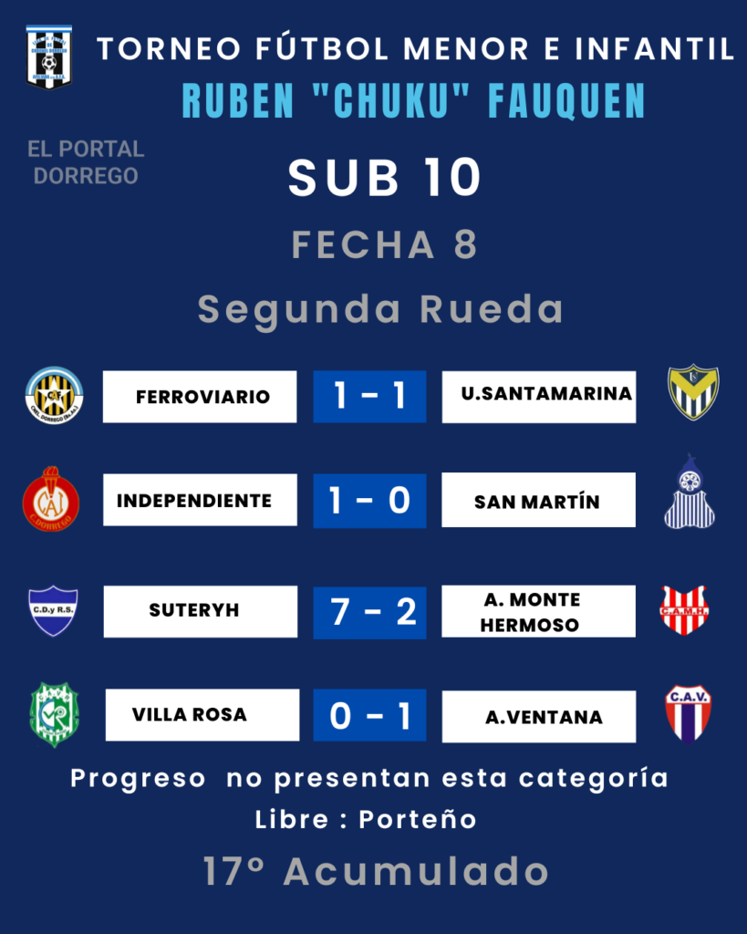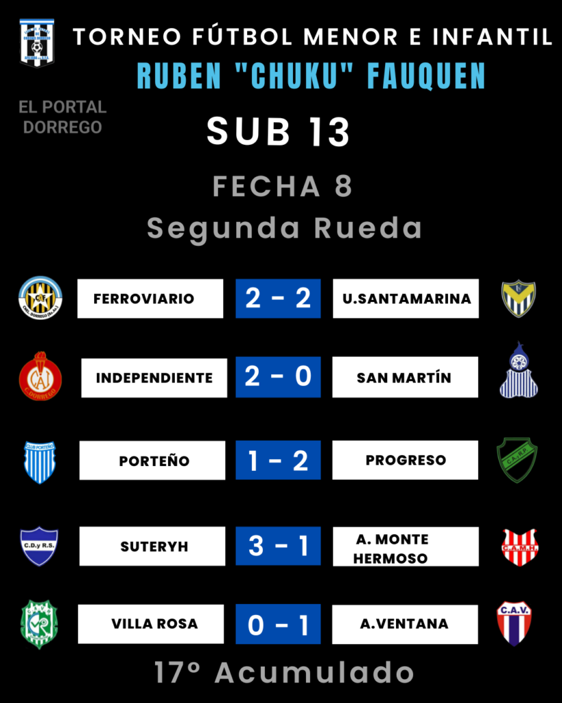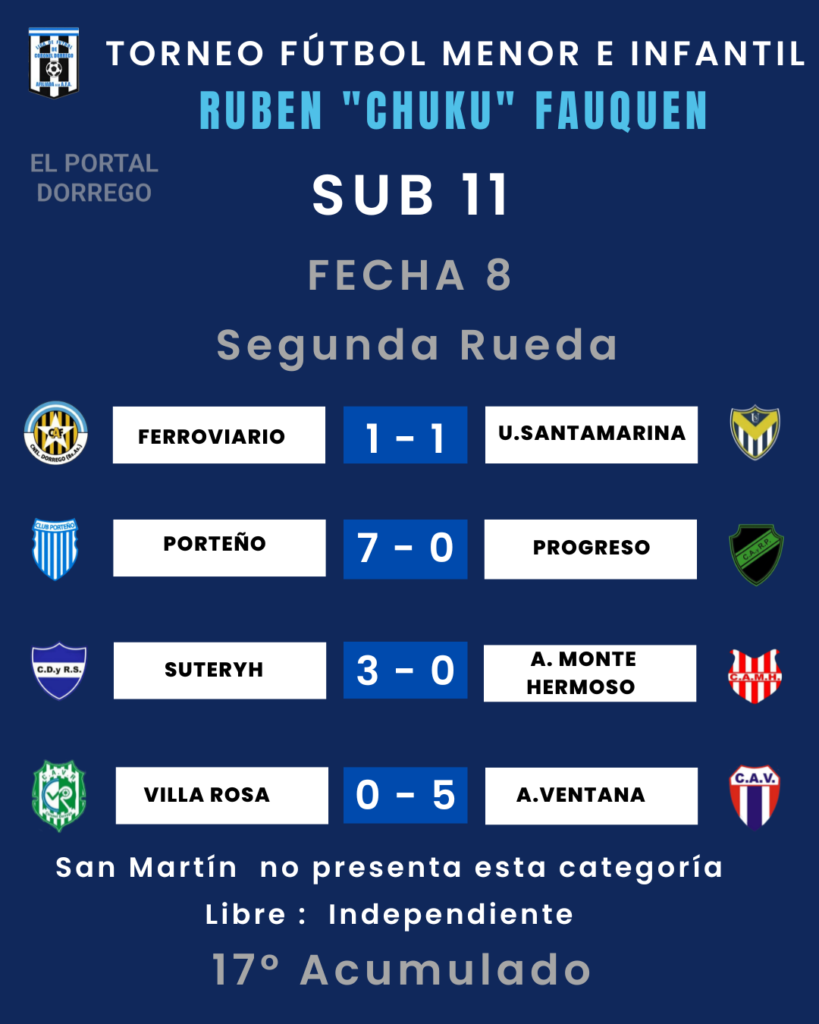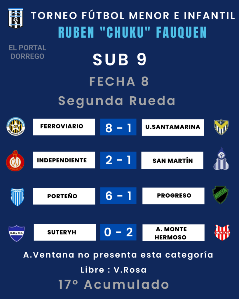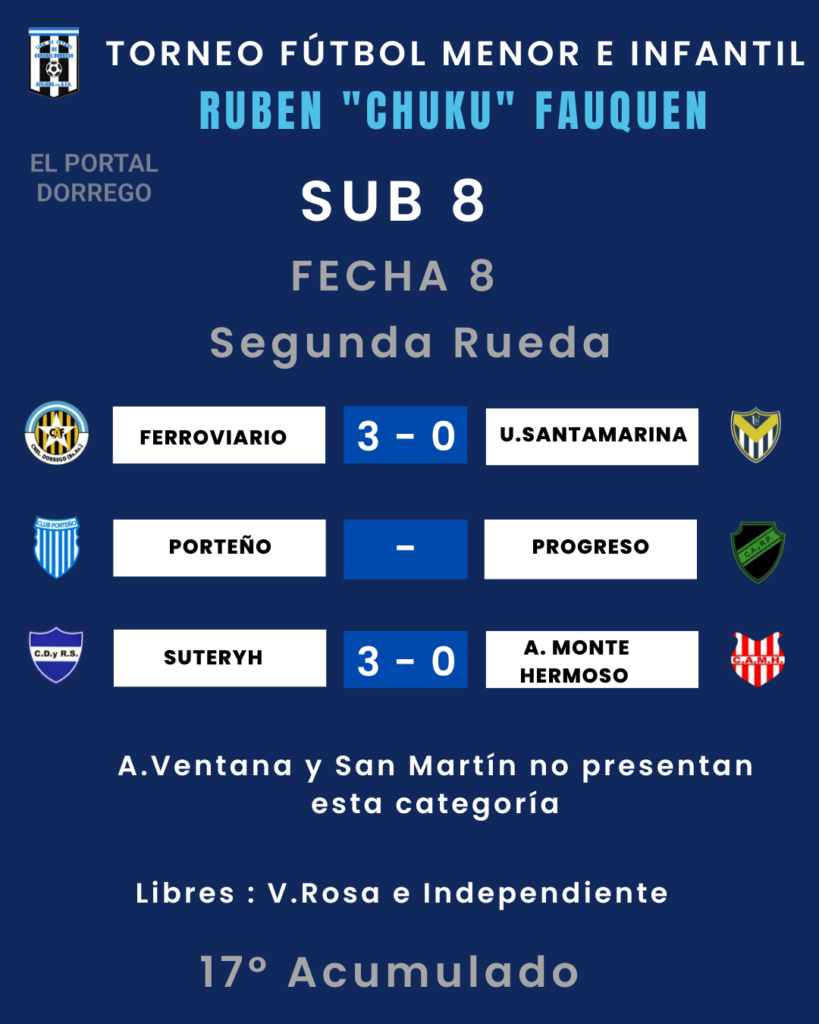 Se jugó la fecha 8 de la segunda rueda y 17 del Acumulado del torneo de fútbol menor e infantil Ruben «Chuku’ Fauquen