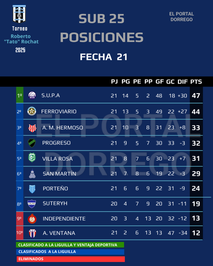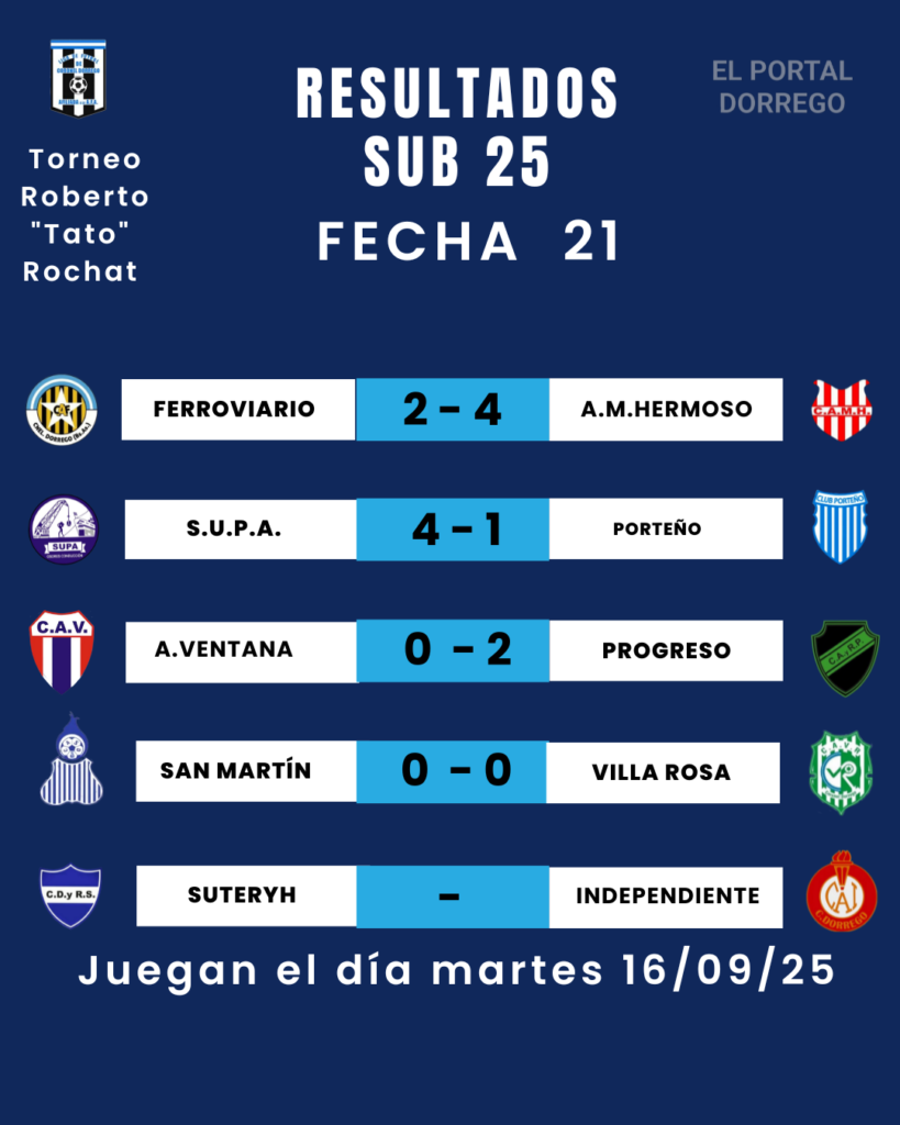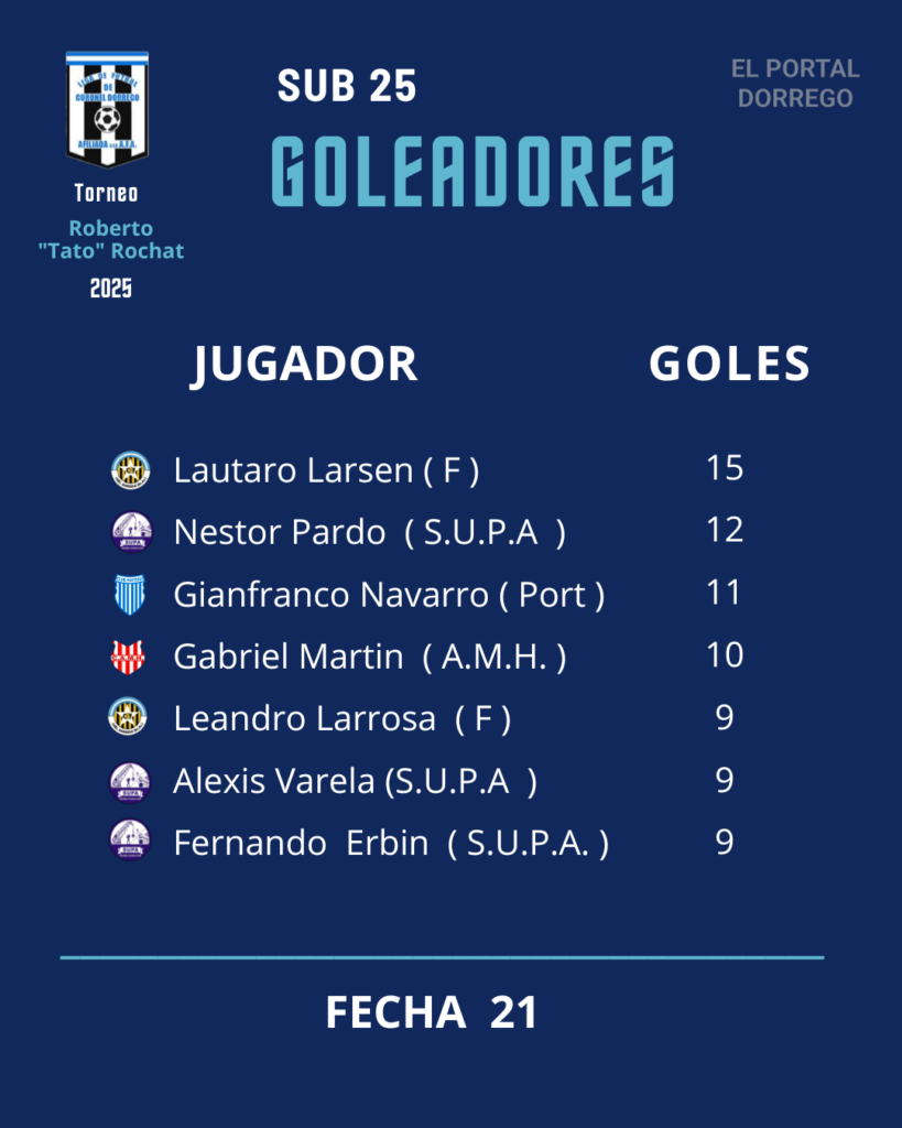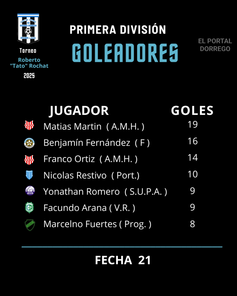 Se jugó la fecha 21 del torneo Roberto «Tato» Rochat, que organiza la Liga de fútbol de C.Dorrego