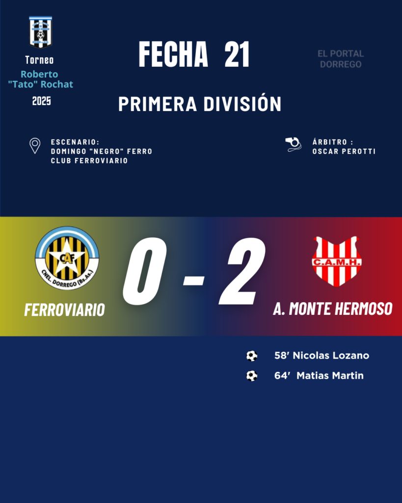 | Ferroviario : ( 2 ) : Lautaro Larsen ( 2 ) ( el segundo de penal ) A.M.Hermoso : ( 4 ) : Gabriel Martin ( 3 ) – Martin Bufalini |