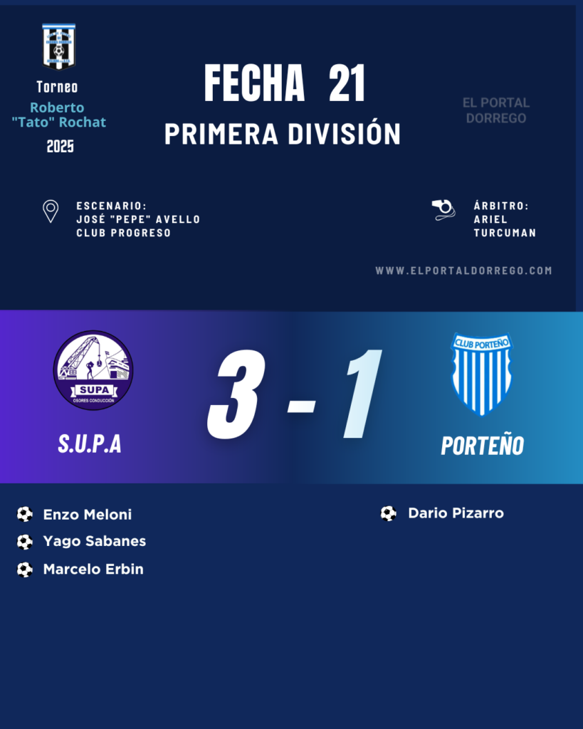 | S.U.P.A. ( 4 ) : Fernando Erbin – Nestor Pardo – Alexis Varela – Ian Quintana Porteño : ( 1 ) : Gianfranco Navarro |