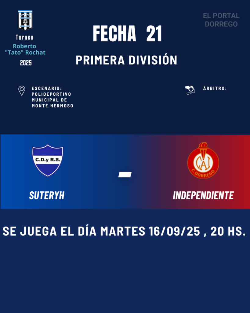 | Suteryh vs Independiente juegan el día martes 16/09/25 desde las 18 hs |