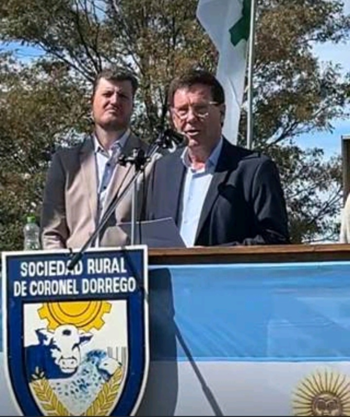 El intendente Juan Chalde dejó inaugurada en la víspera la Sexagéxima Exposición de Ganadería e Industria organizada por la Sociedad Rural de Coronel Dorrego. Estaba presente en el Acto desarrollado en el predio ferial ruralista de nuestro medio, el tesorero de CARBAP, Santo Rosati, el director de la Sociedad Rural Argentina, Javier Pérez Balade y el presidente de la entidad organizadora, Luciano Kloberdanz. Durante su alocución, el intendente Chalde manifestó entre otros conceptos que: «El campo ha sido motor fundamental de nuestra economía desde los comienzos de nuestra Nación y lo es hoy todavía». Luego agregó: «El campo, a principios del siglo XX fue un lugar amable y hospitalario para recibir a muchos inmmigrantes que se vinieron de la vieja Europa buscando oportunidades en nuestro País y particularmente en nuestra Provincia de Buenos Aires y las encontraron y se desarrollaron muchas familias y contribuyeron a ese crecimiento, dejando muchas historias, algunas de ellas reflejadas por una escritora que es de nuestra zona en su libro Amores Inmigrantes». Luego Chalde brindó detalles de lo que produce por año Argentina desde el campo para puntualizar que «en nuestro Distrito la siembra de grano fino debe estar alrededor de las 185 mil hectáreas en esta temporada y probablemente con la siembra de gruesa se llegue a otras 70 mil hectáreas, y la última vacunación arrojó una cantidad de 188 mil cabezas de ganado. Desde el municipio participamos en forma cotidiana de las actividades del productor agropecuario, sobre todo el ganadero, desde nuestras oficinas que en su momento fueron pensadas como parte de Casa de Campo, y hoy sin tener ese nombre están en las instalaciones de la Sociedad Rural de Coronel Dorrego; participamos también con nuestra Dirección de Vialidad para el mantenimiento de los caminos rurales, desde la Dirección de Producción para acompañar todo lo relacionado a capacitaciones sobre genética, microemprendimientos, apoyo a las gestiones crediticias; también apoyamos desde nuestras oficinas de Compras y Contaduría, en la búsqueda de una mayor eficiencia que permita tener los mejores costos cuando hacemos las inversiones. Tenemos claramente una responsabilidad muy importante vinculada con el sector, la más importante, el mantenimiento de los caminos rurales; en ese aspecto le damos la importancia que estoy manifestando, tenemos desde esa Dirección de Vialidad, prioridad para atender los caminos rurales.