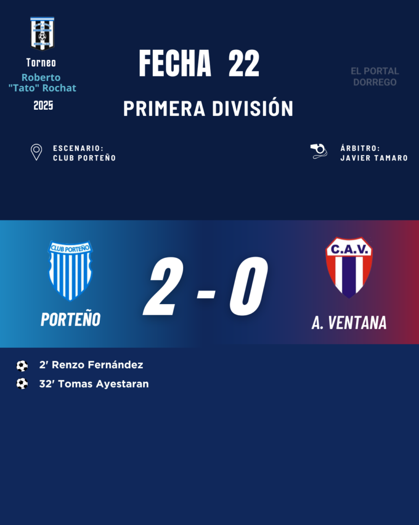 | Porteño : ( 2 ) : Gianfranco Navarro ( 2 ) A.Ventana : ( 0 ) |