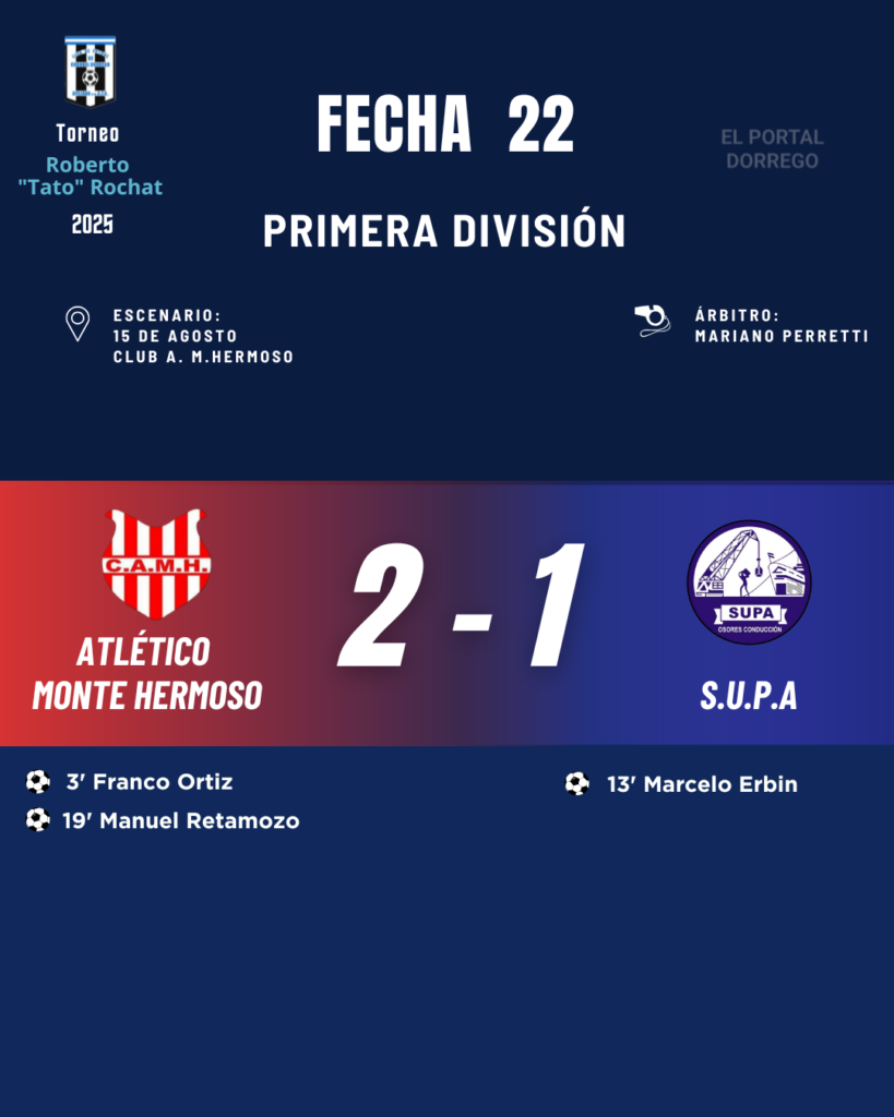 | A.M.Hermoso : ( 2 ) : Martin Bufalini – Thiago Basualdo S.U.P.A. ( 0 ) |