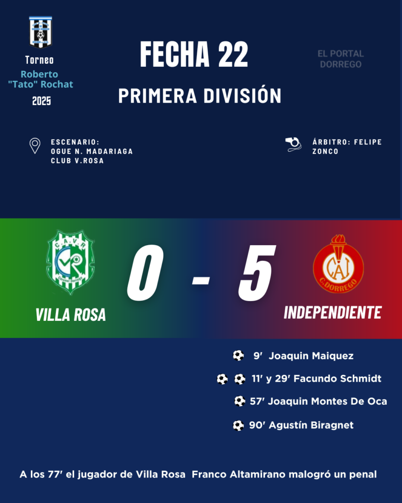 | Villa Rosa : ( 1 ) : Thiago Salazar Independiente : ( 2 ) : Yago Merlo – Valentin Yezzi Expulsado : D.T. de Villa Rosa , Rodrigo Maidana |
