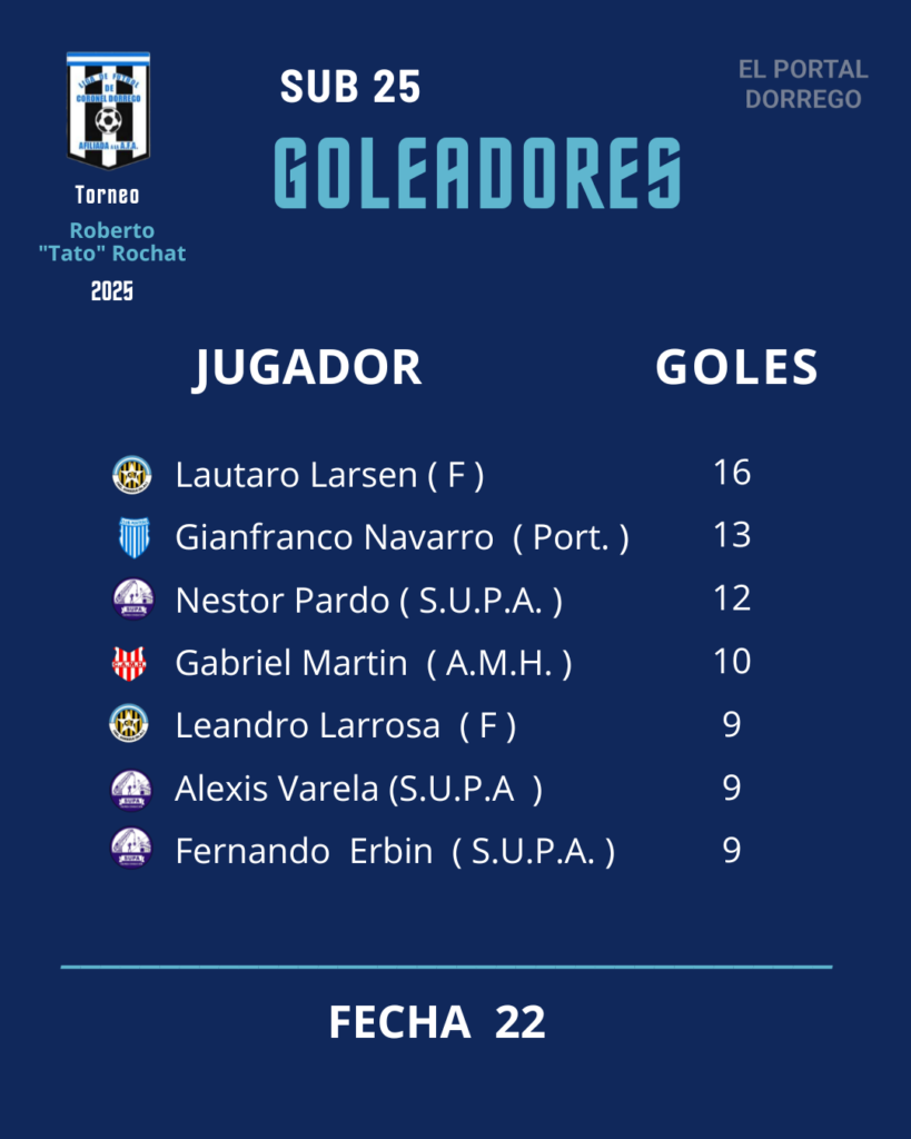 Se jugó la fecha 22 del torneo Roberto «Tato» Rochat, que organiza la Liga de fútbol de C.Dorrego