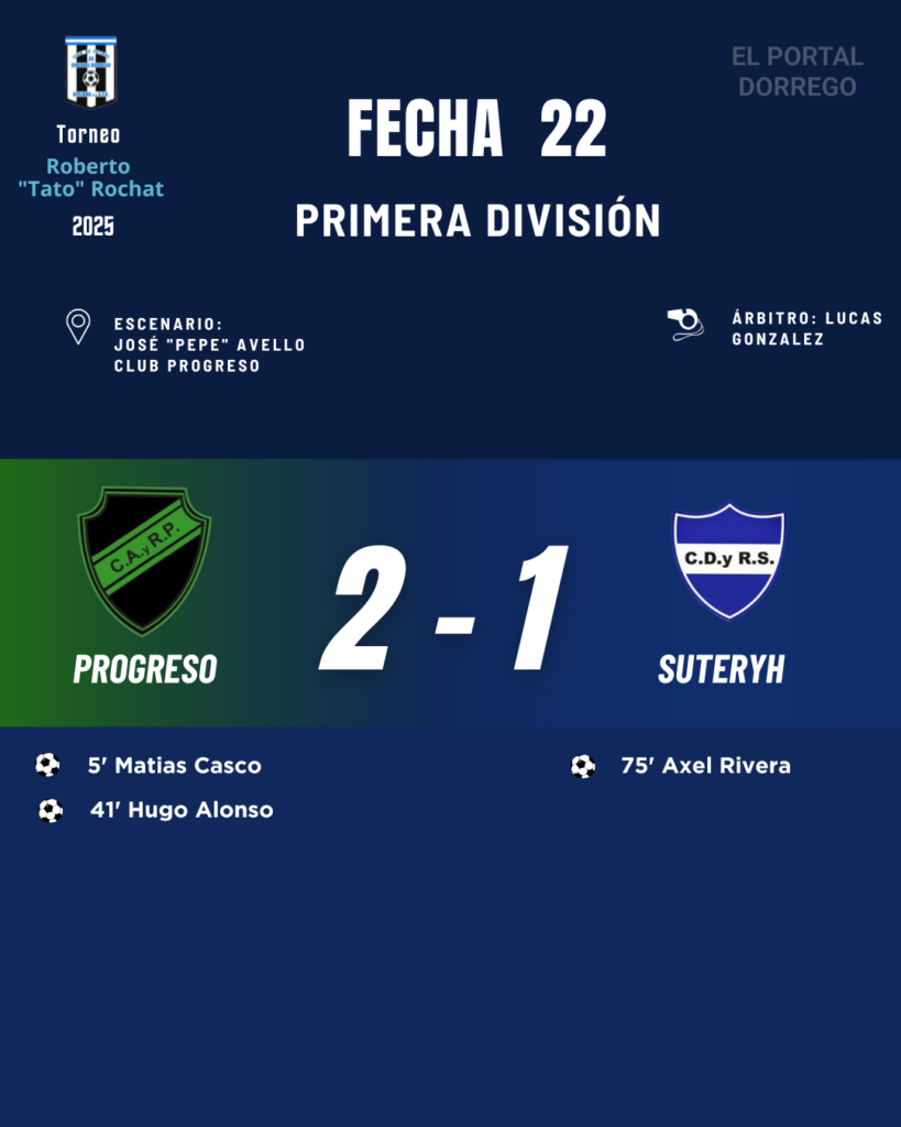 | Progreso : ( 3 ) : Manuel Cepeda – Luciano Perez – Claudio Gonzalez Suteryh : ( 1 ) : Alex Plattner |