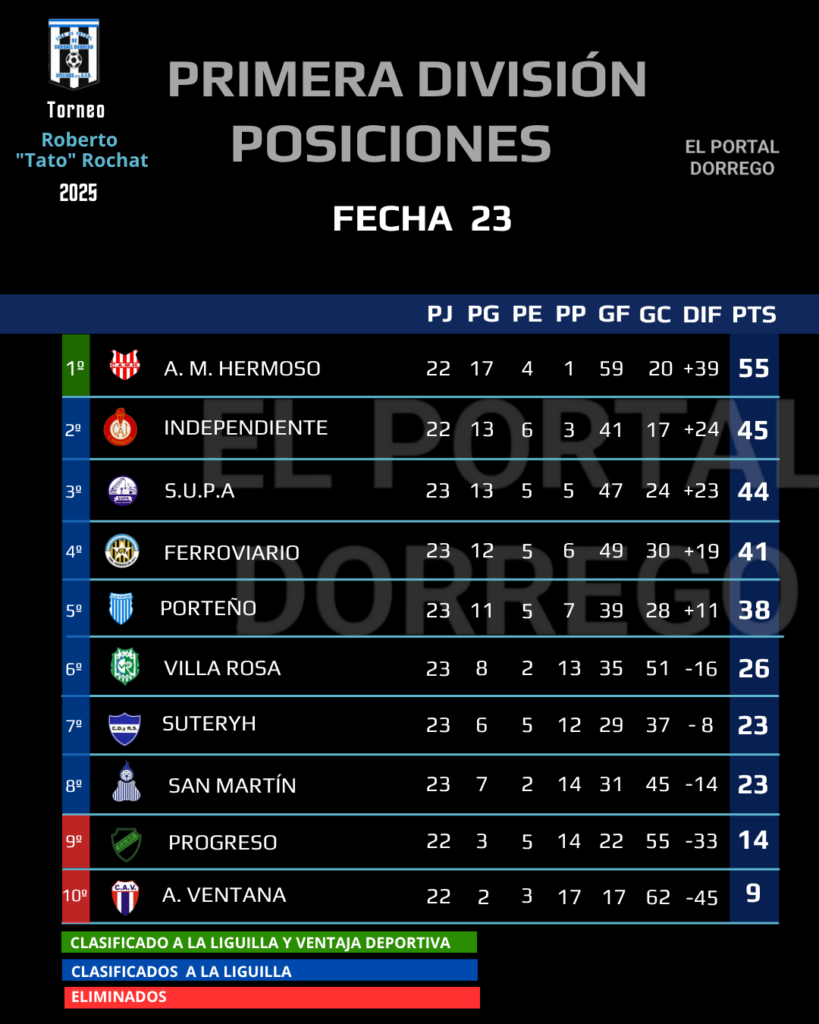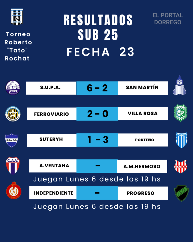 Se jugó parcialmente la fecha 23 y última del torneo Roberto «Tato» Rochat, que organiza la Liga de fútbol de C.Dorrego