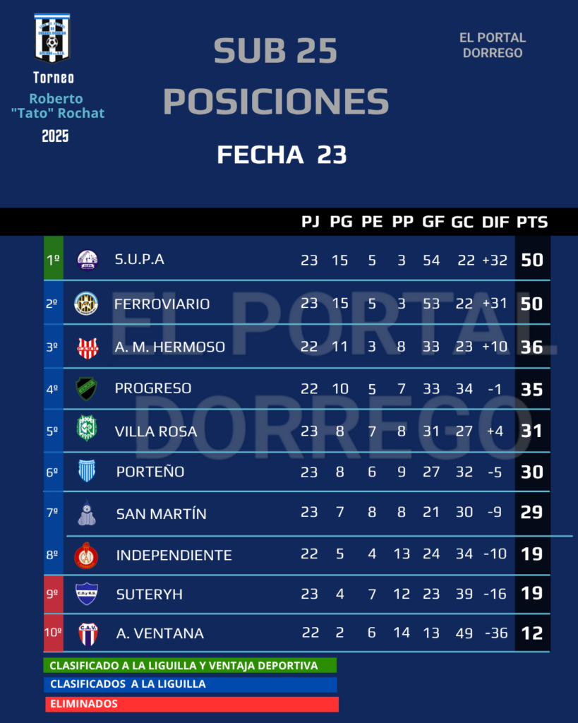 S.U.P.A se quedó con la ventaja deportiva , falta definir el 8° Lugar , Independiente tiene que perder por 7 goles para perder el lugar con Suteryh