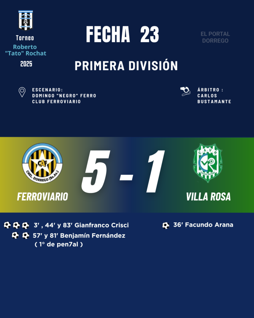 | Ferroviario : ( 2 ) : Lautaro Larsen – Leandro Larrosa Villa Rosa : ( 0 ) Expulsados : Joaquin Godoy ( F ) – Enzo Perez ( F ) |