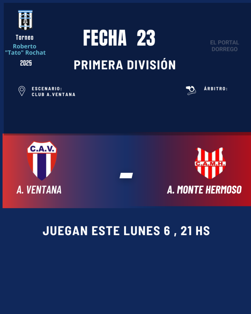 | A.Ventana vs A.M.Hermoso juegan este lunes 6 desde las 19 hs |